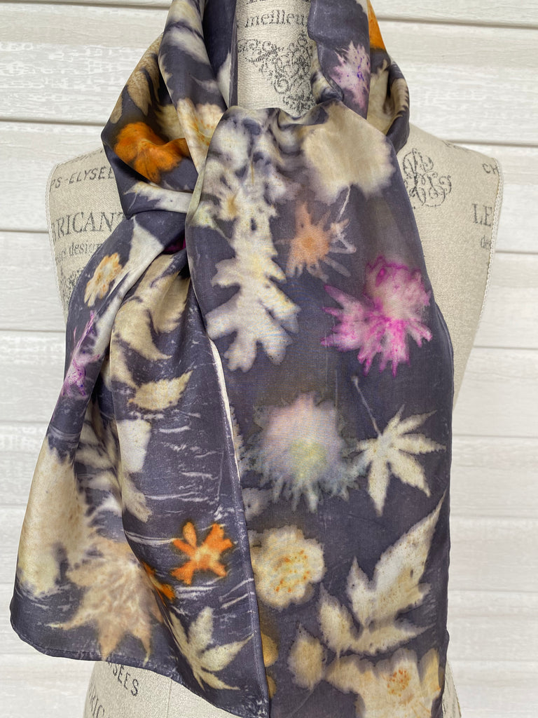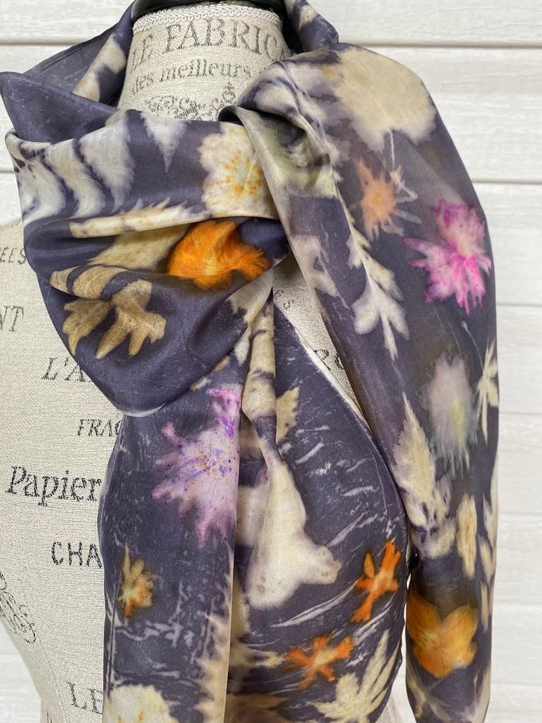 Item: Silk scarf with natural flower and leaf prints